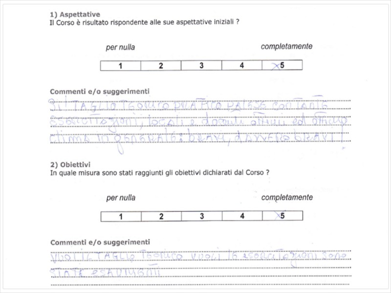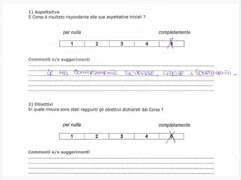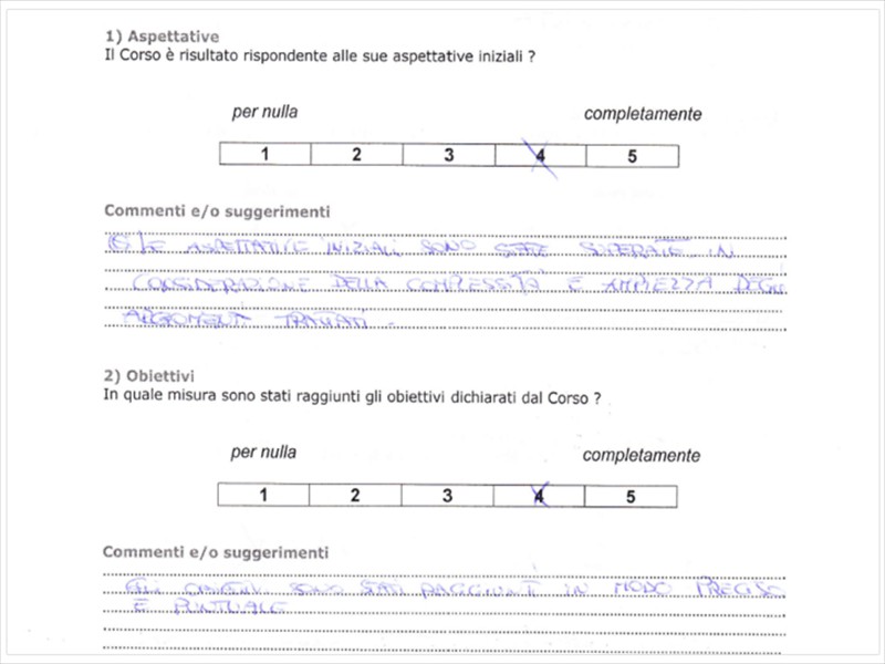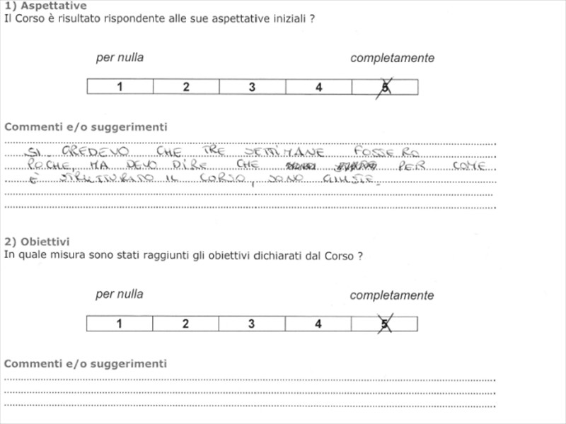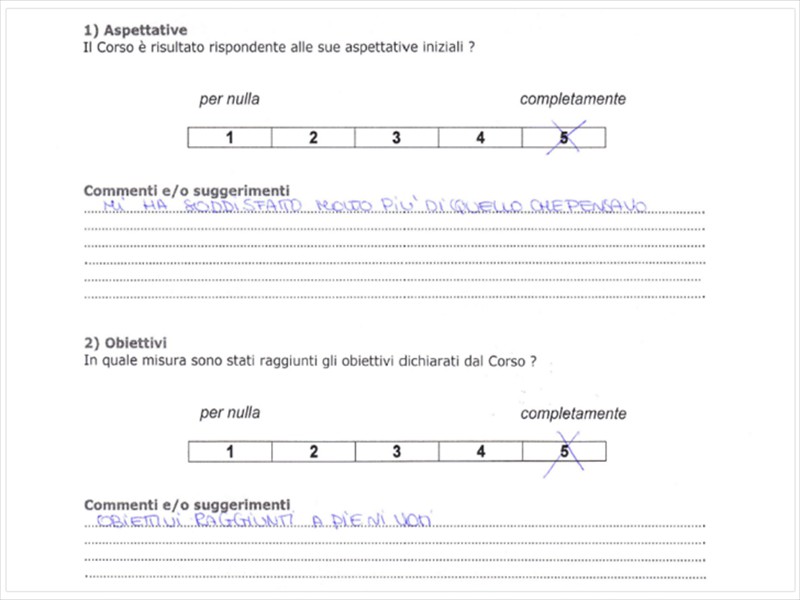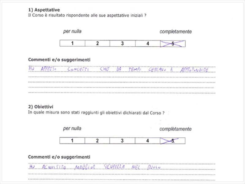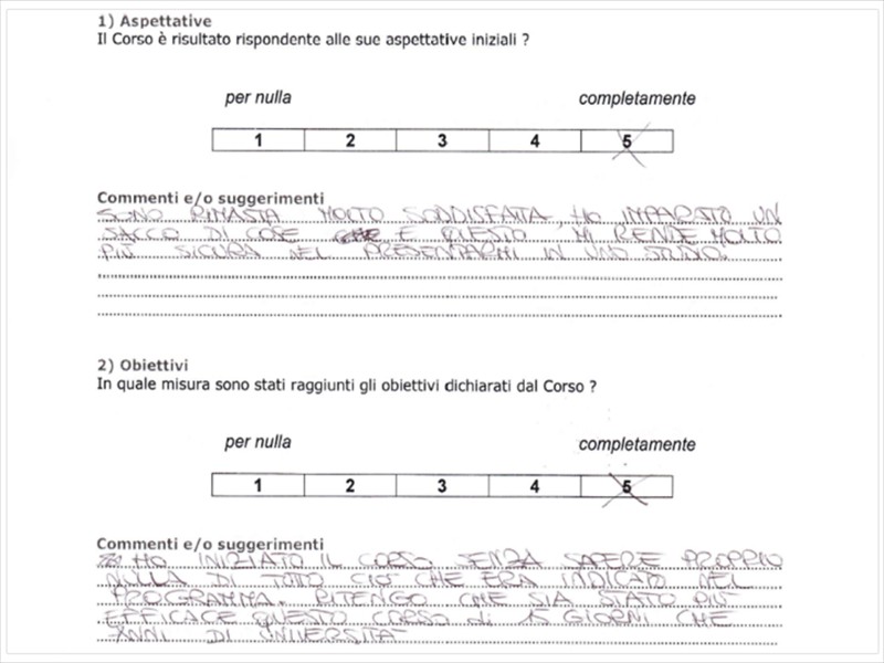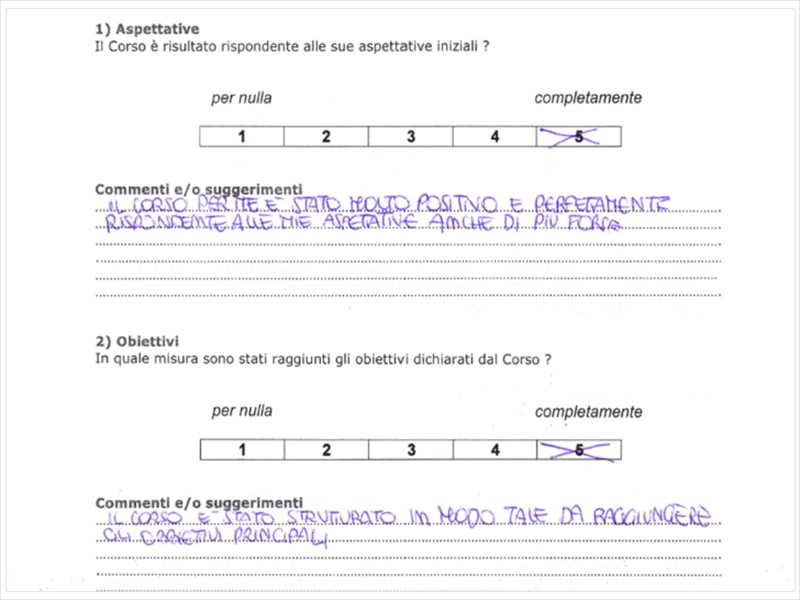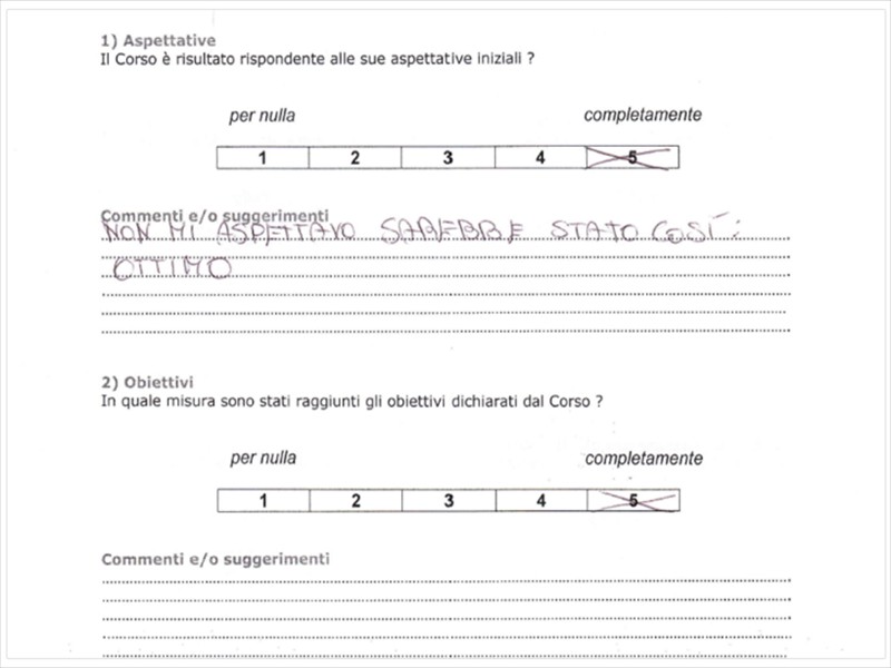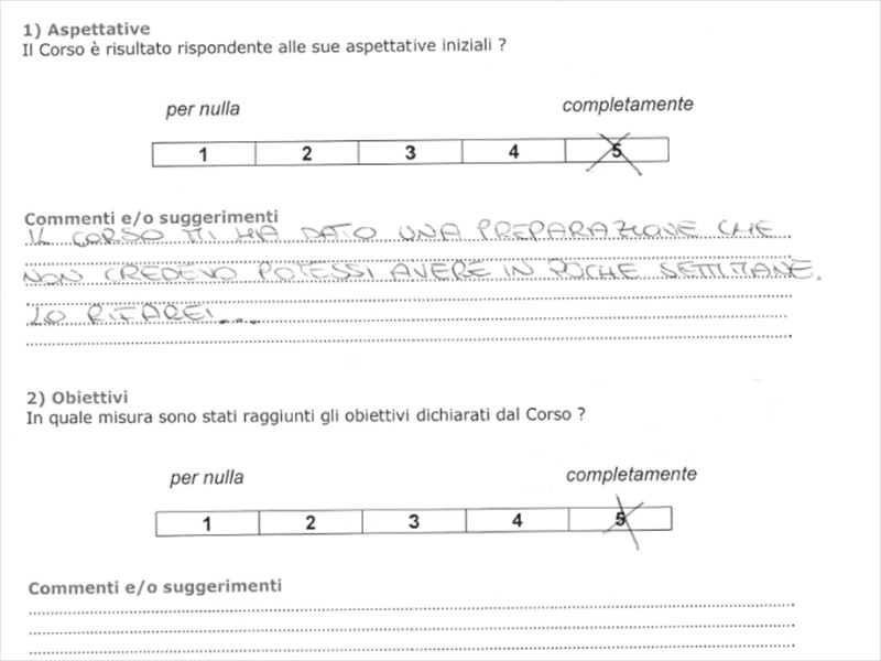 Commenti dei corsisti: leggi i commenti nel questionario compilato a fine Corso