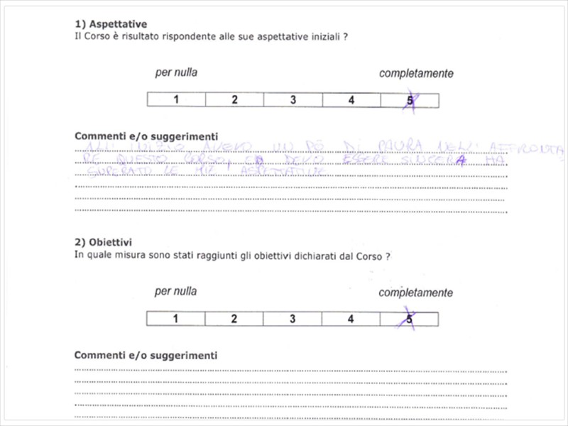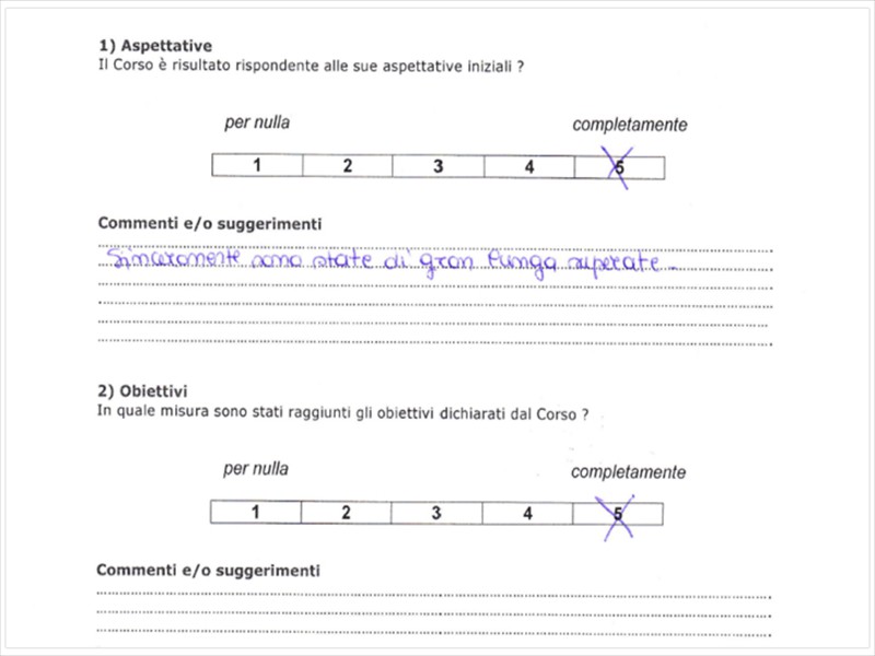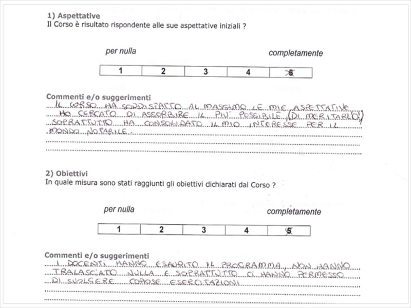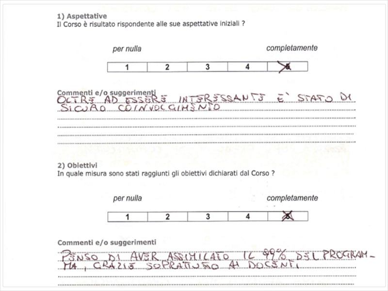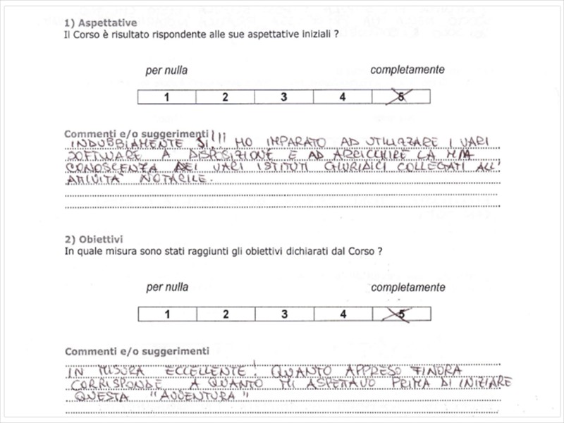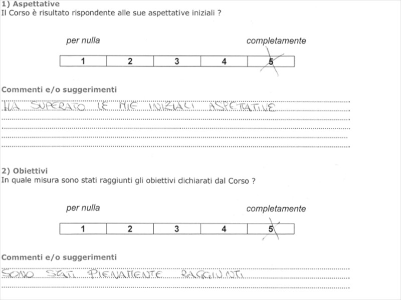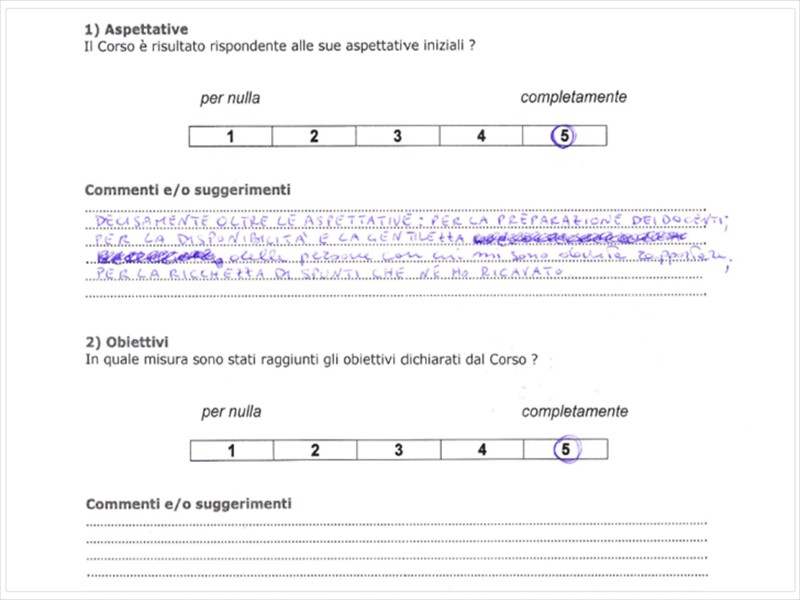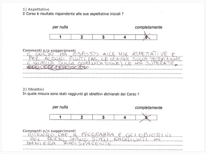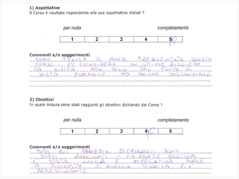 Commenti dei corsisti: leggi i commenti nel questionario compilato a fine Corso