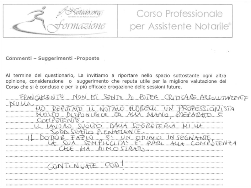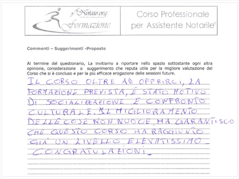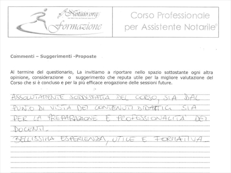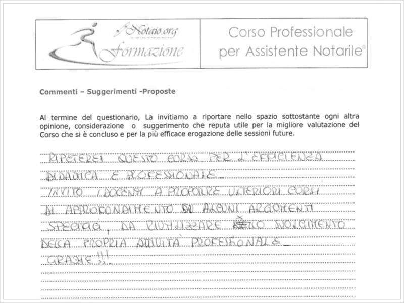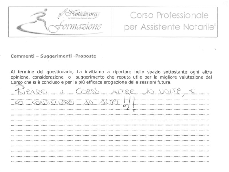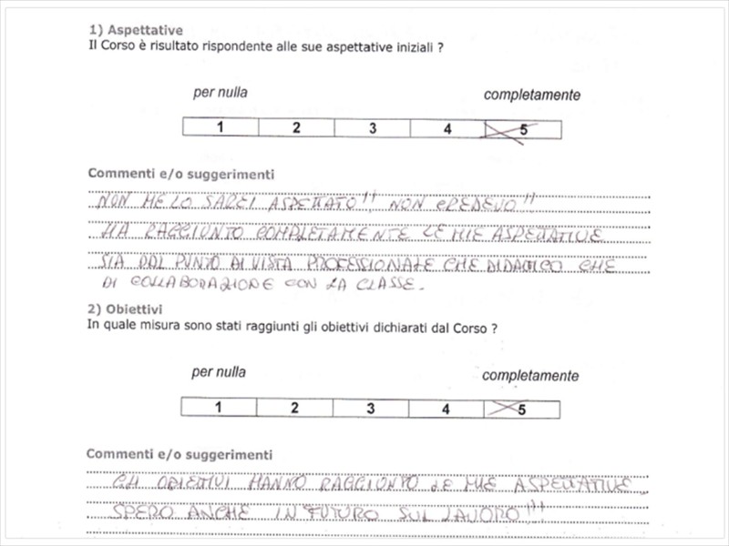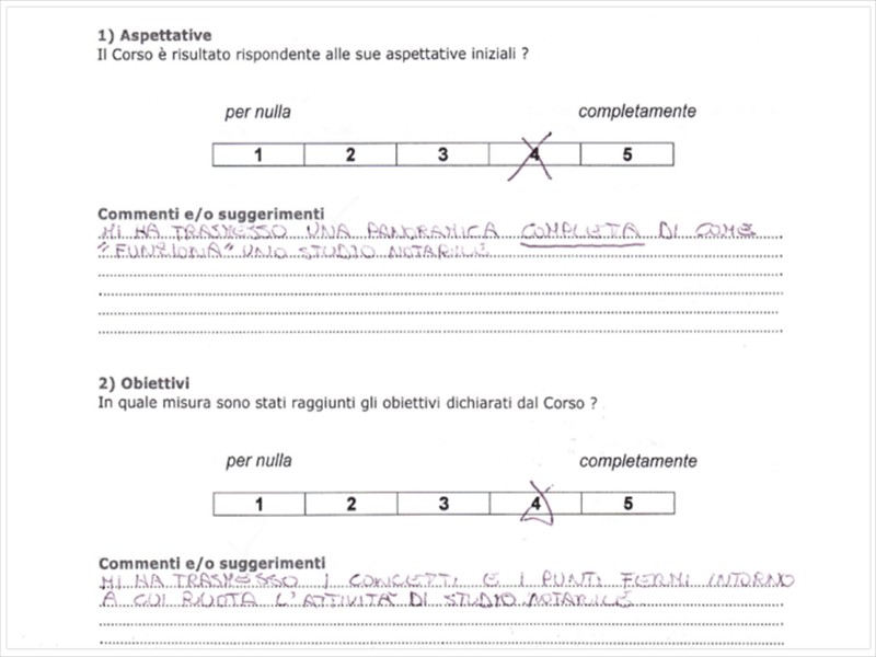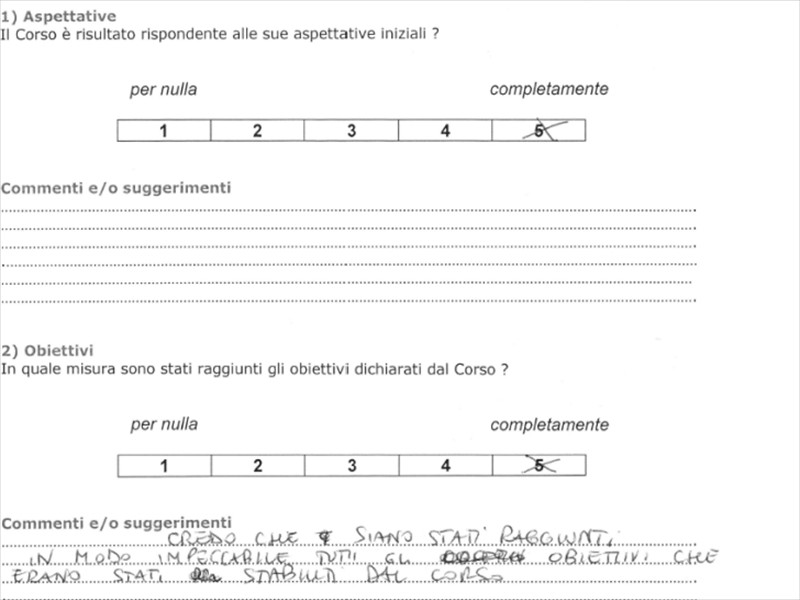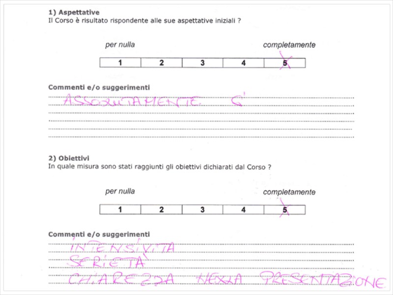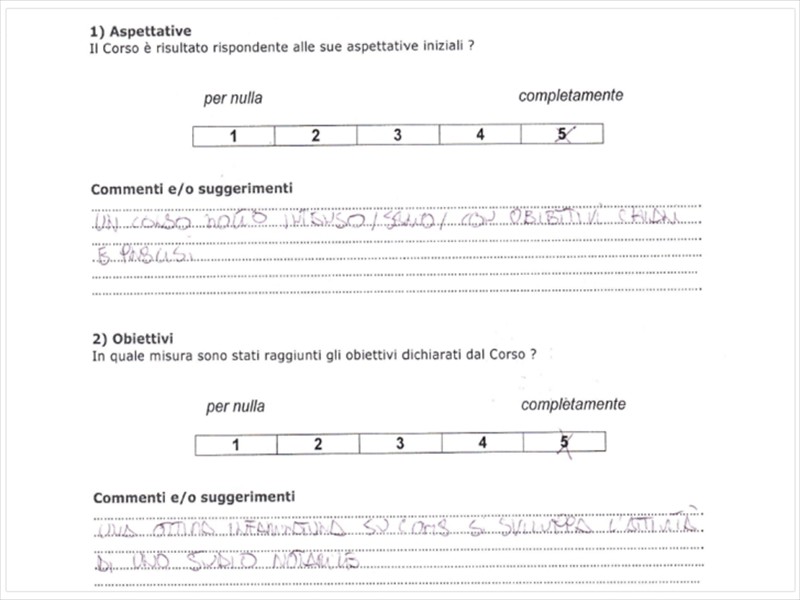 Commenti dei corsisti: leggi i commenti nel questionario compilato a fine Corso